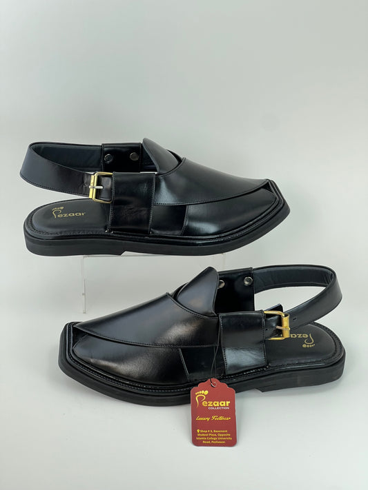 Upper Touch Flate sole T shape peshawari chapal (polishable Black)