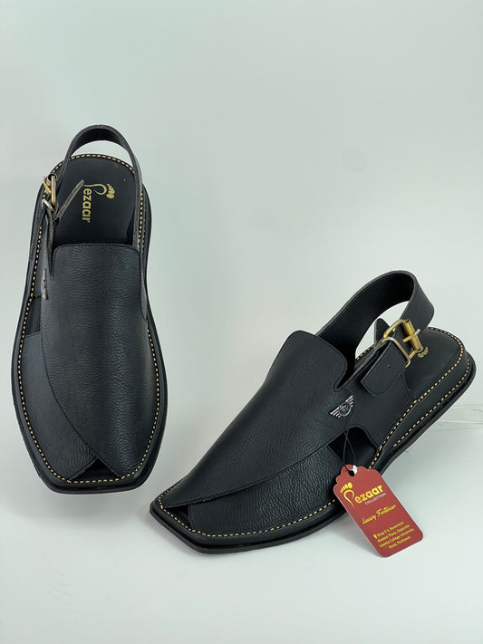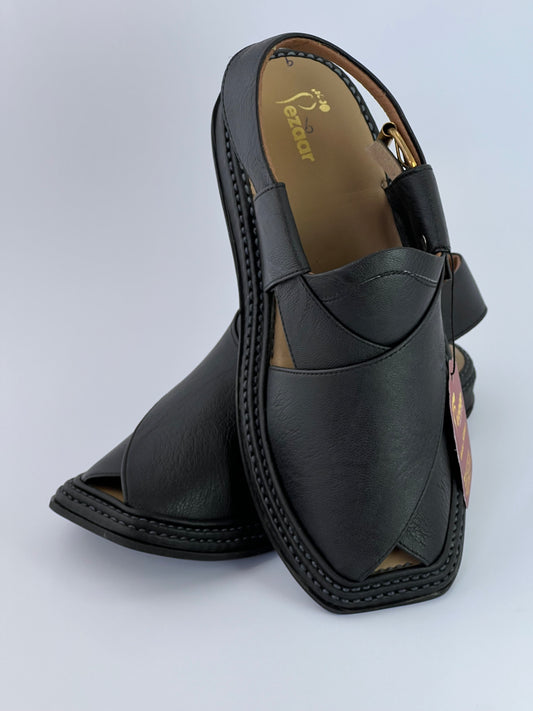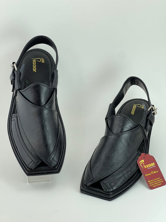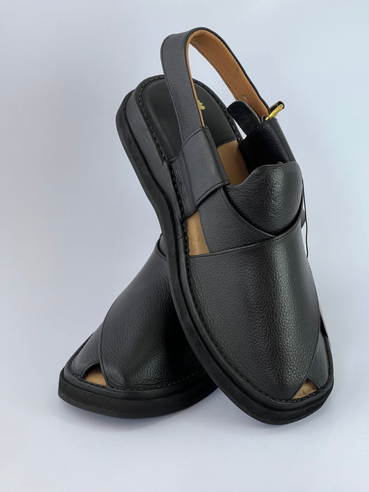 Upper touch leather peshawari chapal (black matte)