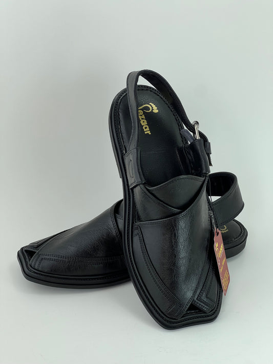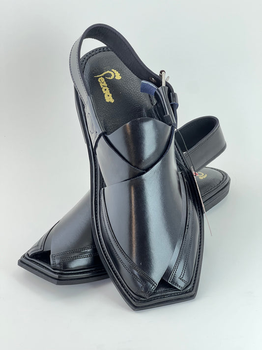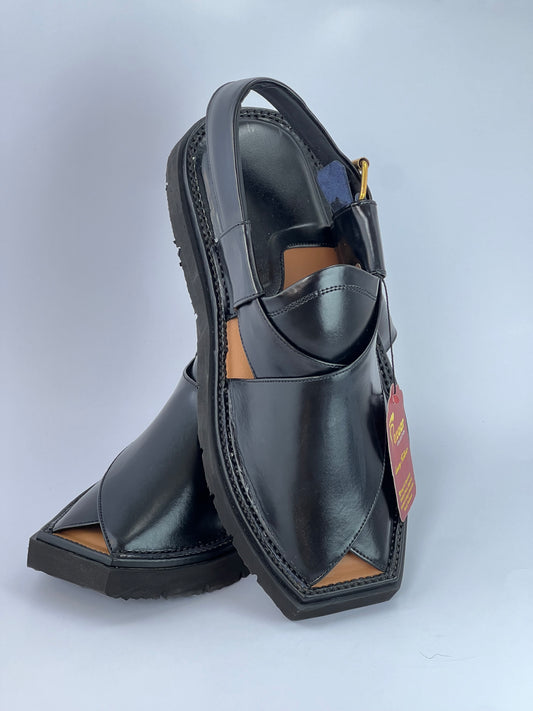 Upper touch leather peshawari chapal (black shine)