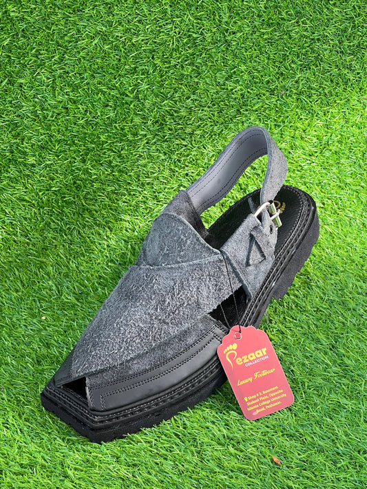 Gogo Black Texture Original Leather peshawari chapal(Light weight)
