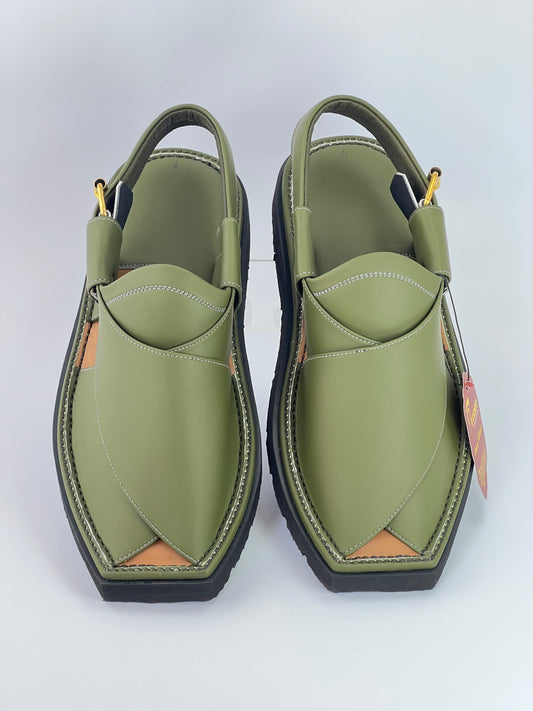 Gogo Greenish Original Leather peshawari chapal(Light weight)