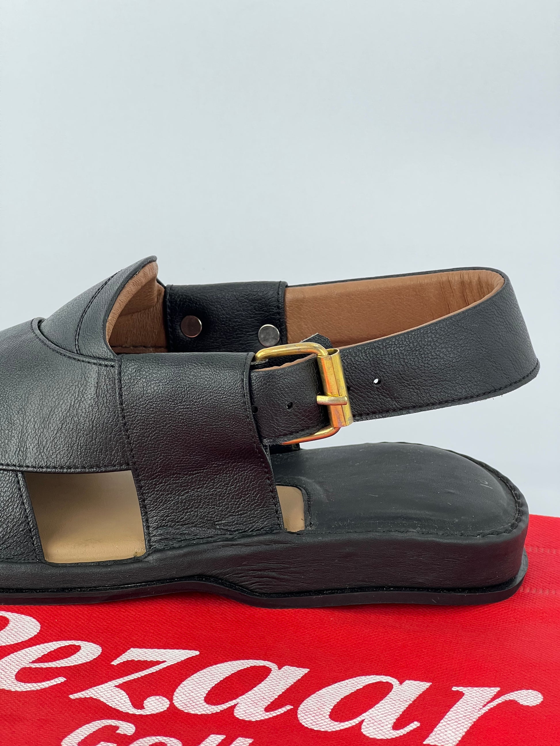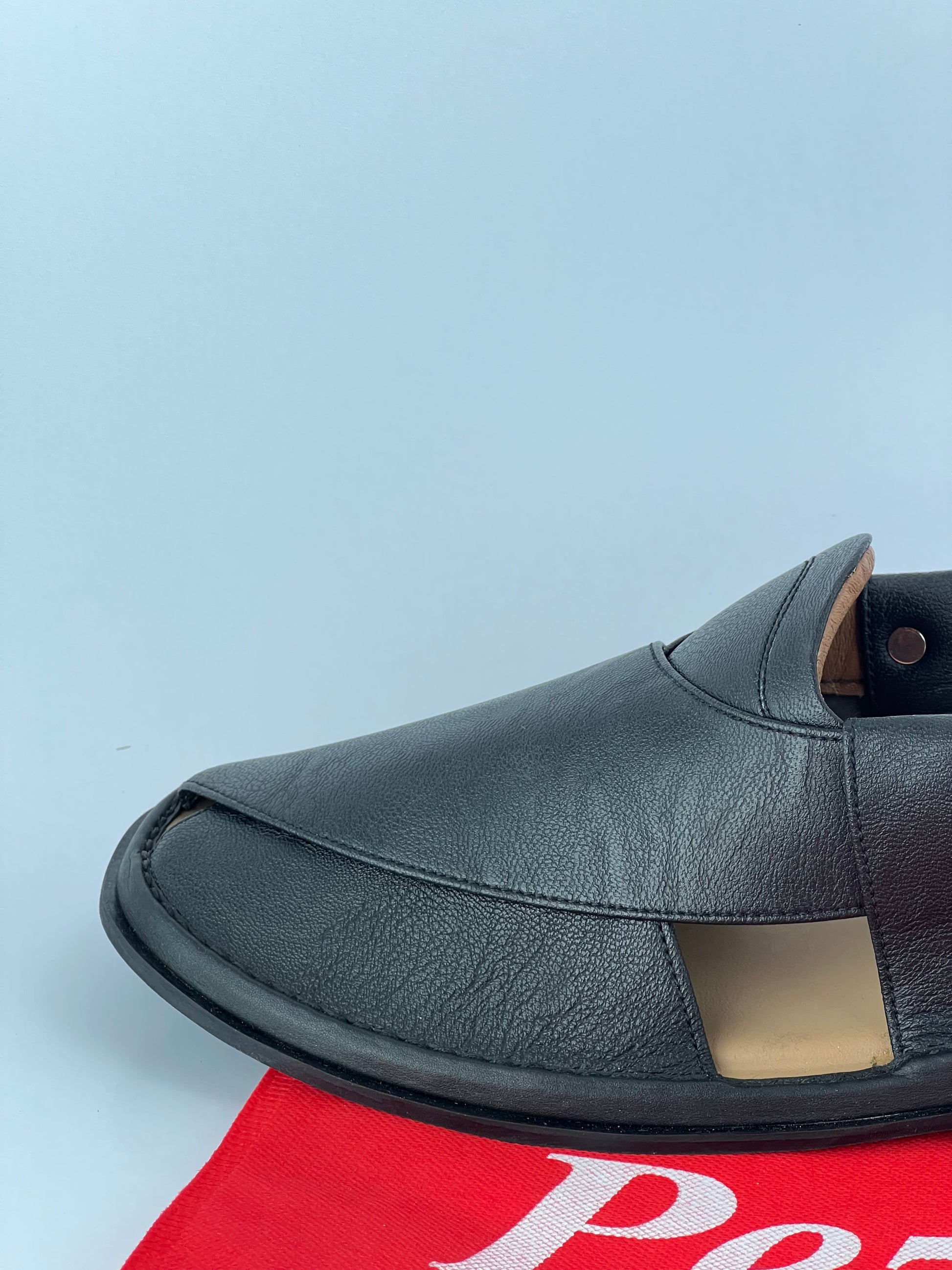 The Gogo Round Shape Midnight Black Light Weight Peshawari Chappal offers a perfect blend of traditional craftsmanship and modern comfort. Designed with a lightweight structure, it ensures effortless wear throughout the day, while the classic round shape and deep black hue provide timeless style. Ideal for both casual and formal occasions, this chappal delivers durability and a refined look rooted in cultural heritage.