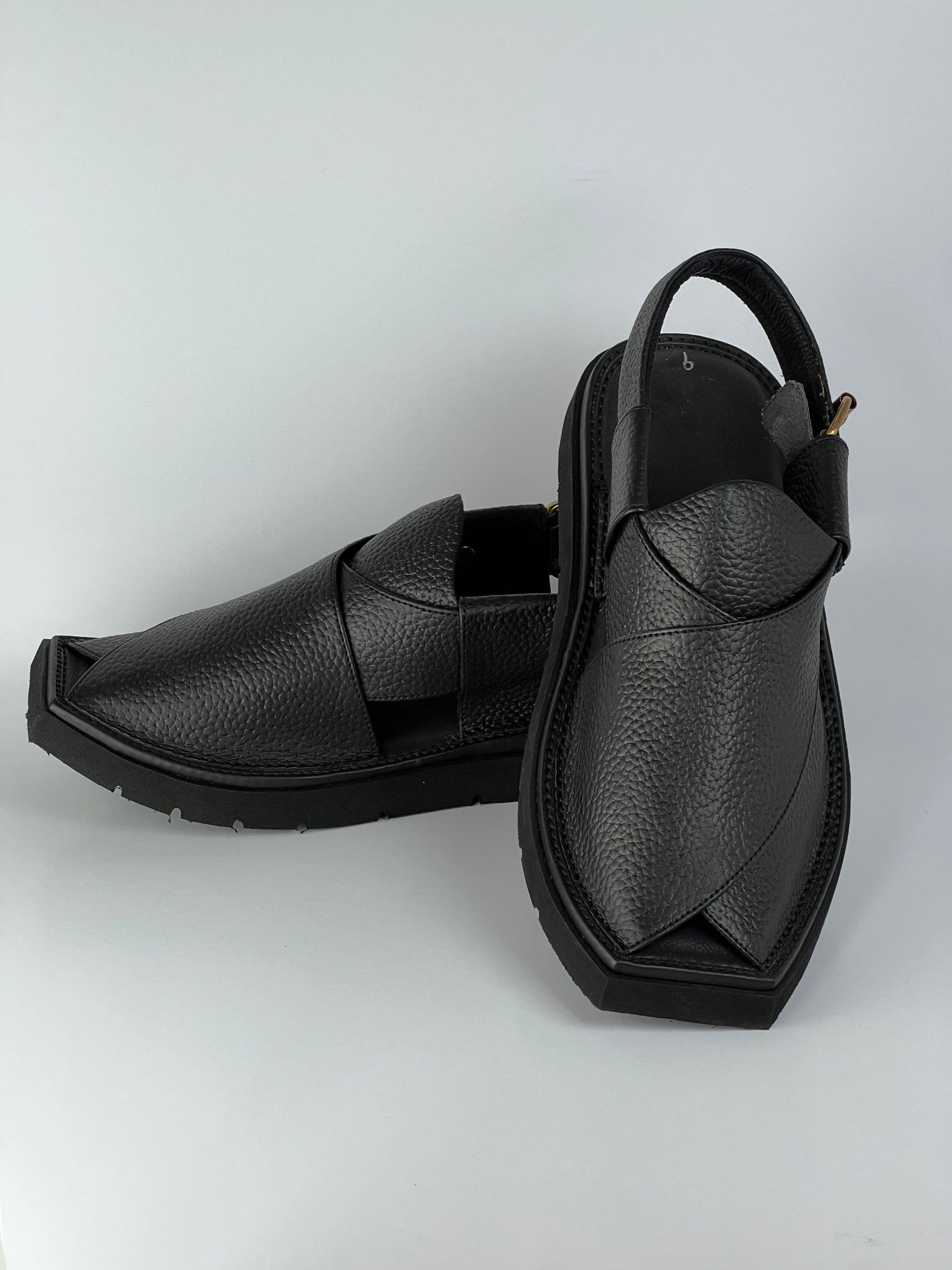 Experience unmatched comfort and durability with the Kaptan Skitcher Sole black texture leather Peshawari chapal. Crafted with lightweight materials and a textured sole, it offers excellent grip and ease of movement, ideal for extended wear. Expertly designed to blend traditional style with modern functionality, these chapals deliver long-lasting support while maintaining an elegant appearance perfect for any occasion.
