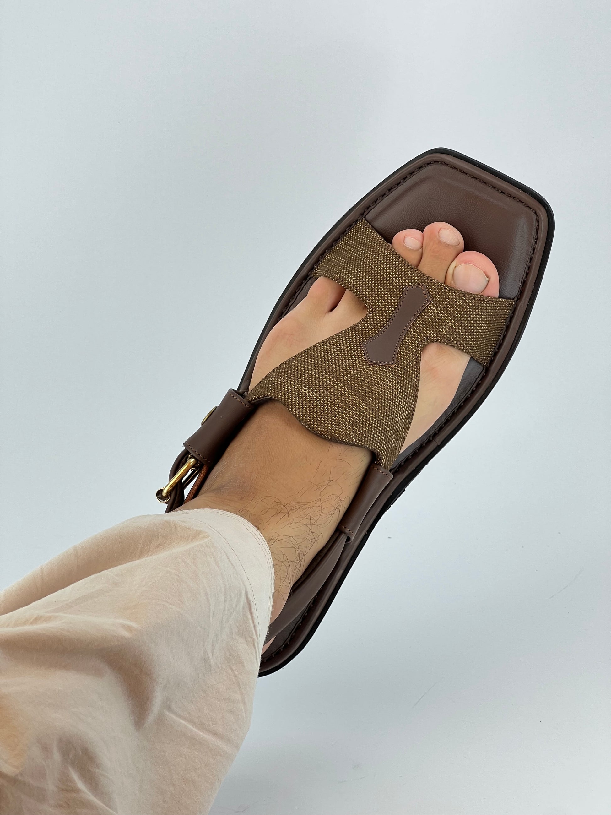 Experience traditional craftsmanship with the Panjedar Chappal in Fabric Chocolate Brown. This Peshawari chapal combines durable fabric with sturdy construction, offering both comfort and longevity. Its rich chocolate hue complements a variety of outfits, making it ideal for everyday wear or special occasions. Designed to provide a secure fit, it balances style with practicality, reflecting authentic regional heritage.