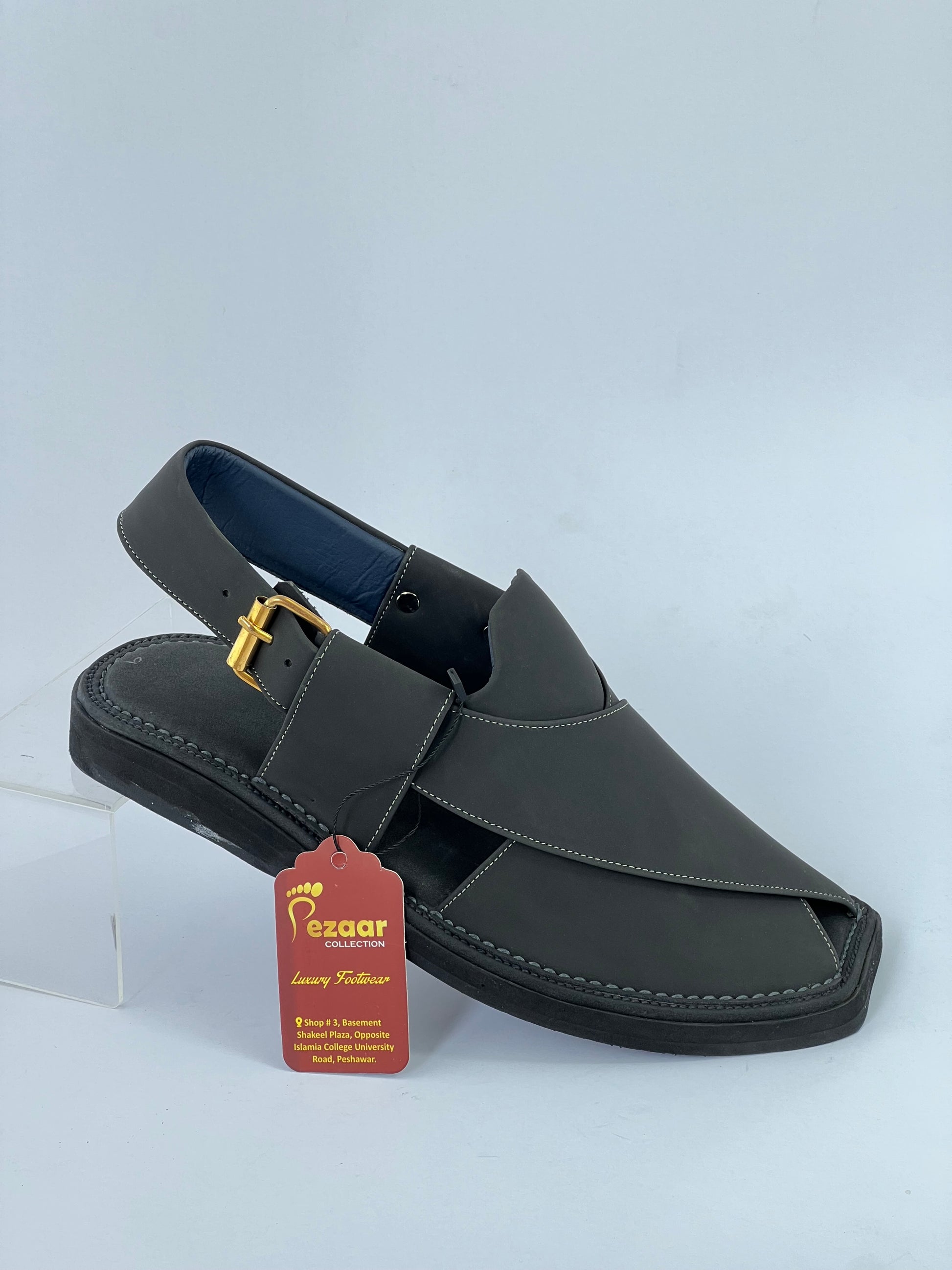 Upper touch leather Peshawari chapal crafted from premium quality leather with a distinctive black shine finish. This traditional footwear features the iconic Peshawari design with comfortable arch support and durable construction. The supple leather upper molds to your foot for a personalized fit, while the sturdy sole ensures long-lasting wear. Perfect for casual occasions and cultural events, this chapal combines authentic craftsmanship with everyday comfort. An essential addition to any wardrobe seeking timeless style and reliability.